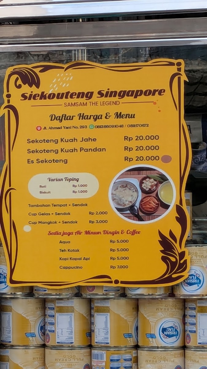 Nestled on Jl. A. Yani in Sukabumi, Siekuoteng Singapore (Samsam The Legend) is renowned for its delectable sekoteng, a traditional Indonesian dessert. This local gem has garnered rave reviews, with patrons praising its richness and heartiness. The standout dish, sekoteng kuah pandan, offers a fragrant twist on the classic, perfect for enjoying during the cool evenings. Customers recommend visiting on weekdays or before 8 PM to beat the crowd and fully appreciate the warm flavors.